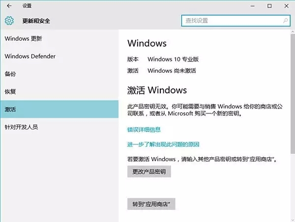在全新安裝Win10 Build 10240專業(yè)版后,未激活狀態(tài)下在系統(tǒng)設(shè)置——更新和安全——激活頁面下會有“轉(zhuǎn)到‘應用商店’”按鈕,點擊此按鈕后可自動打開應用商店并轉(zhuǎn)到Win10專業(yè)版購買頁面。
