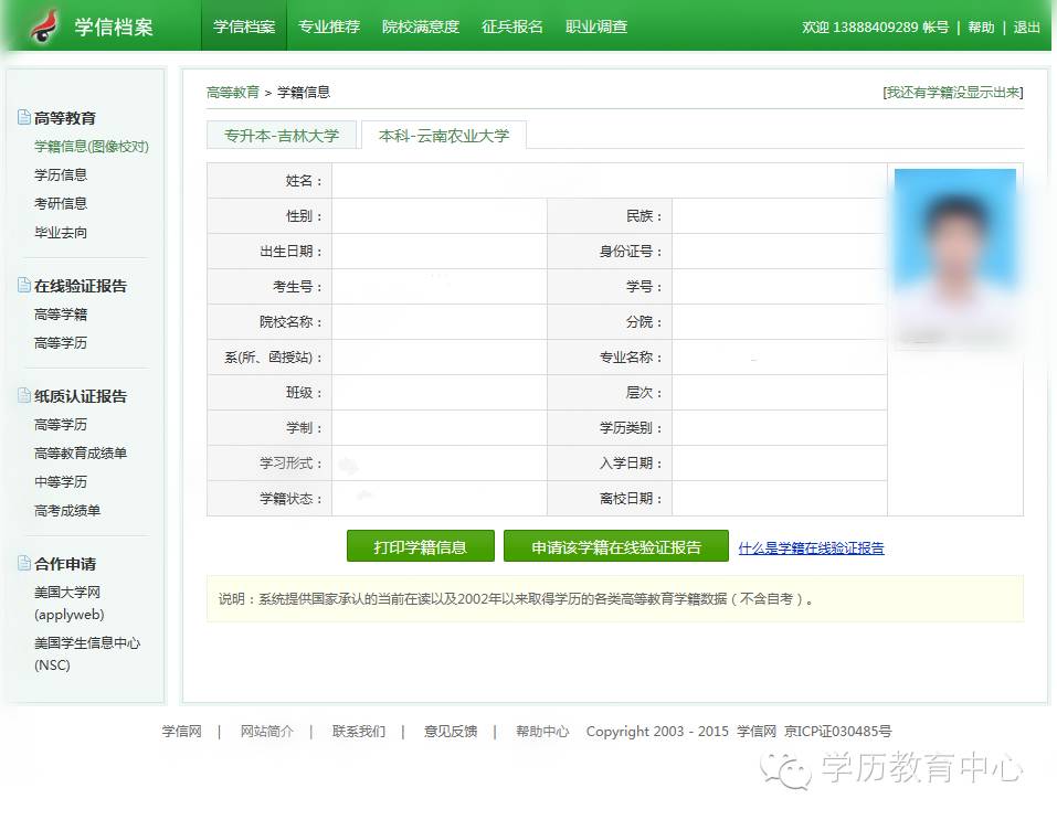 中國高等學歷教育學籍信息查詢流程