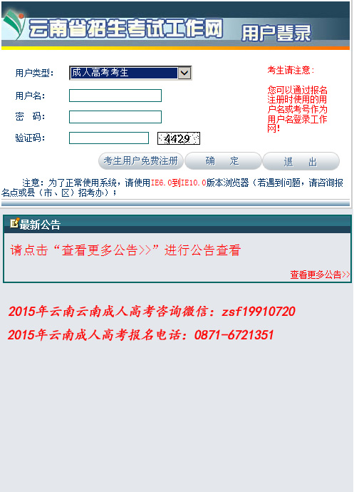 2015年 成人高考 網上報名網址(點擊網址報名進入):http://www.ynzs.cn/