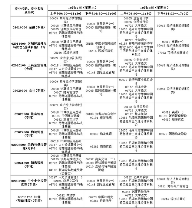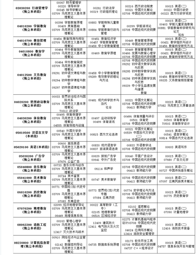2015年云南省10月份自考開考專業(yè)及考試科目考試時(shí)間公告:
