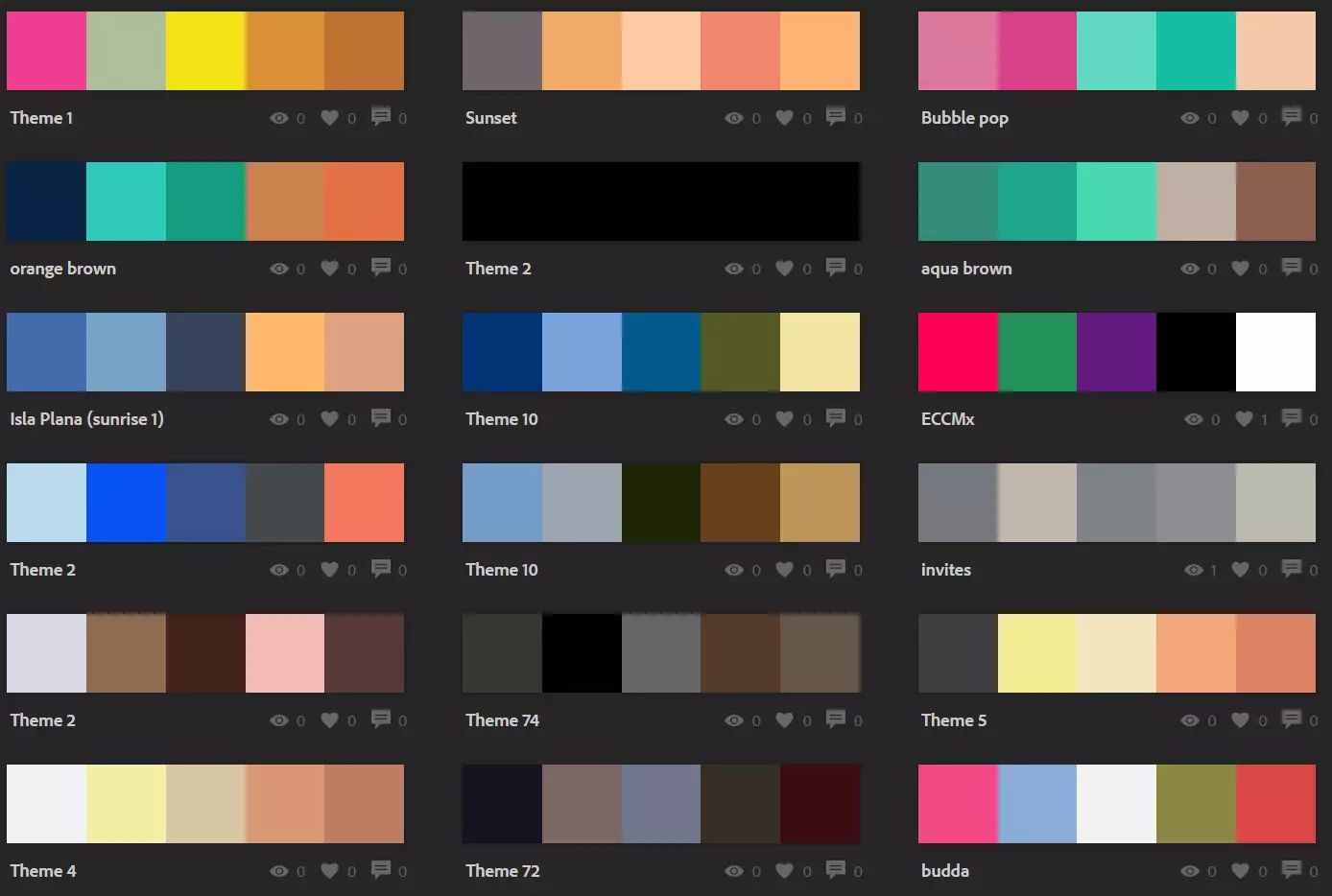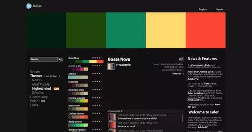 Adobe Kuler(color.adobe.com)是在線色彩工具的典范。有數千個出色的預置色彩模板可供選擇,你也可以利用這款既先進又好用的工具來生成自己的模板。
