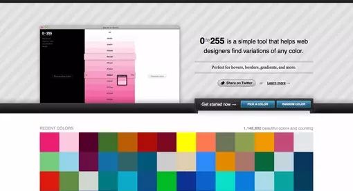 0to255(www.0to255.com)也是我的至愛之一,是尋找顏色變化的一款非常震撼的工具。這讓它在設計網站的邊界和懸浮(hover)效果時表現出色,但你同樣可以用它來為PPT的排版或其他要素尋找重點色。