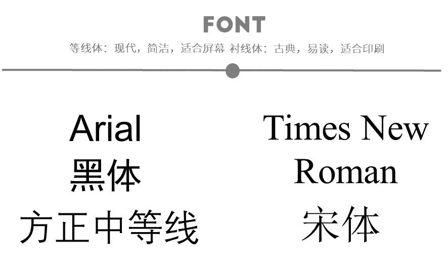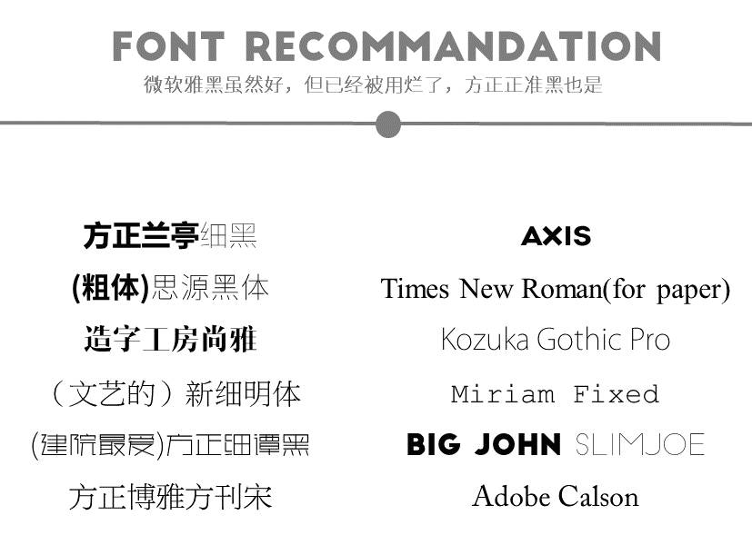 最基本的一條建議是,做PPT請選擇不帶襯線的字體,例如英文中的Arial或中文里的黑體。