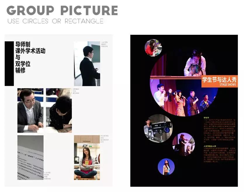 如果有一組圖片,你可以嘗試穩重的矩形排版,以及稍微活潑一些的圓形剪裁。