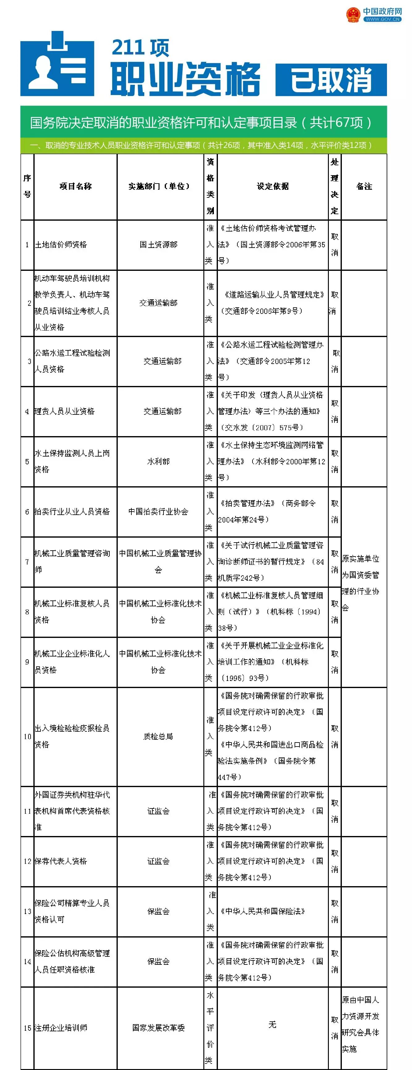 迄今為止,已經有4批共211項職業資格許可和認定事項被取消看看下列名單,幫你擺脫“考證一族”的困擾!